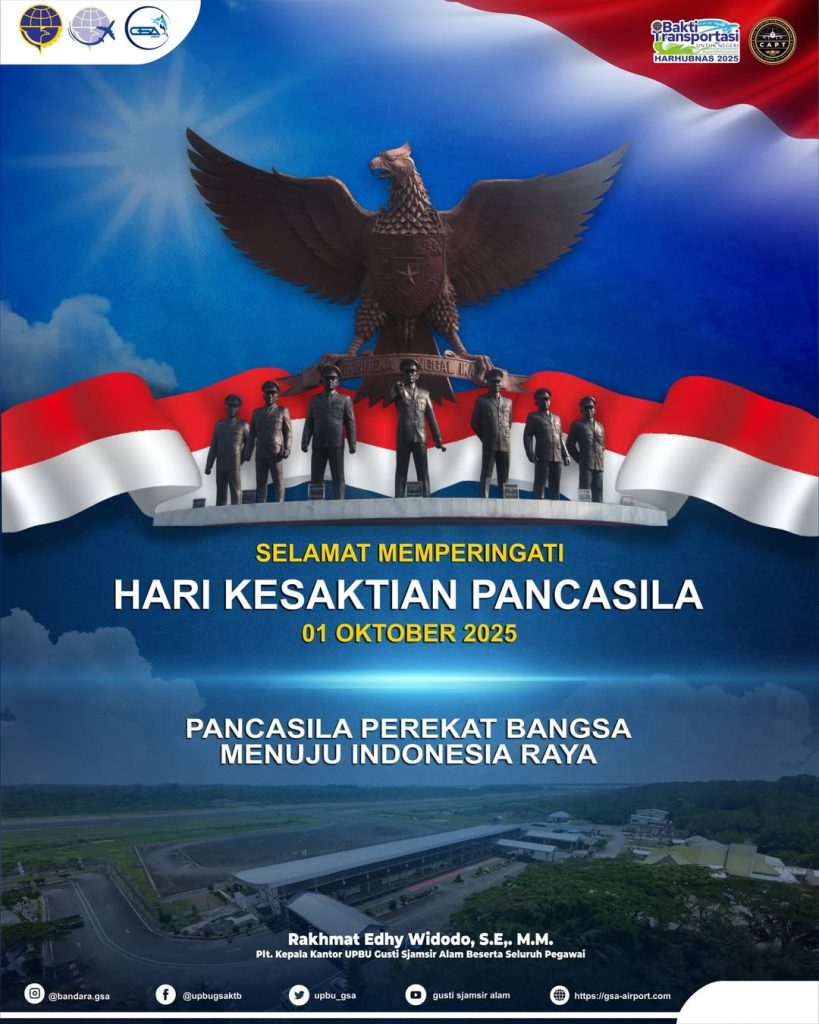 Keluarga Besar Kantor Unit Penyelenggara Bandar Udara Kelas II Gusti Sjamsir Alam mengucapkan :